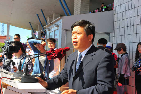 校长马立群致大会开幕词并宣布:“sunbet申搏官方网站第十五届田径运动会开幕!”他说,在全校上下认真学习贯彻党的十八大和校第一次党代会精神,奋力推进学校高水平大学建设的重要时刻,sunbet申搏第十五届田径运动会今天在这里隆重开幕了。首先,我代表学校领导班子向全校师生员工致以诚挚的问候!向精心筹备本届运动会的组委呼呼工作人员致以衷心的感谢!向全体运动员、教练员、裁判员致以良好的祝愿!体育是党的教育事业重要组成部分,是立德树人的重要载体和手段。落实十八大精神,办好人民满意的教育,一项具体工作就是要大力加强学校体育工作,提高学生体质健康水平。一年一度的全校运动会,是学校体育工作的一次集中检阅,是全校师生蓬勃向上精神面貌的生动展示,对于促进学生全面发展、进一步提高学校体育工作水平也将起到重要的推动作用。体育不仅是一项运动,它更是一种精神,赋予我们勇敢、果断和激情。它是一种力量,让我们追求更快、更高、更强。它是一种财富,带给我们健康和快乐。生命在于运动,运动使我们更加健康,拥有一个健康体魄是我们成就美好未来的根本。让我们热爱生活,珍视健康,充满激情,走出课堂,奔到操场,拥抱阳光,在风景如画的美丽环湖大学里,一起享受运动带给我们的乐趣,一起享受健康带给我们的幸福。最后,让我们共同祝愿运动会圆满成功!