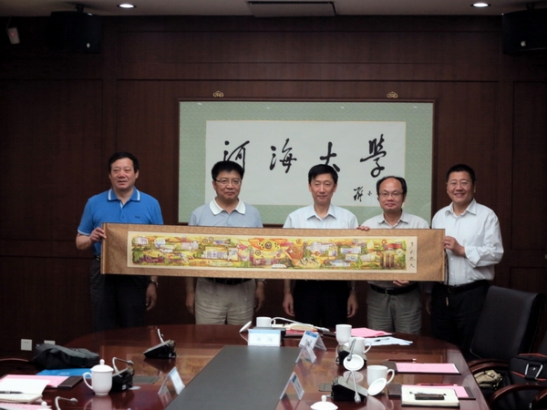 6月4日,sunbet申搏党委书记李海红、副校长邓启刚、科技处长郑永杰、科技处副处长王清滨以及食品与生物工程学院副院长任健一行考察了河海大学。