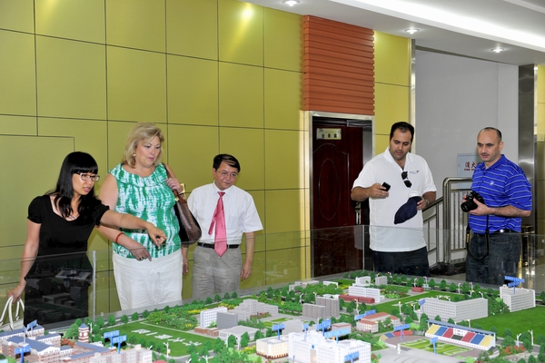 会谈结束后,美国客人在外事处处长王中双、副处长周丽陪同下,参观了sunbet申搏校园、校史馆、场馆中心、三致广场等,对sunbet申搏美丽的环湖大学及其充满艺术和文化氛围的建筑景观和教育教学设施给予了高度赞赏。