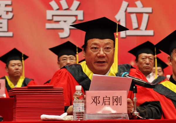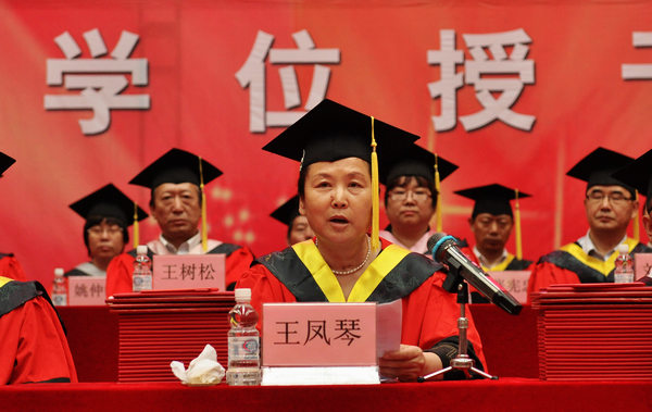 校长、学校学位评定委员会主任马立群为获得学位的优秀毕业生代表授予学位,正冠拨苏