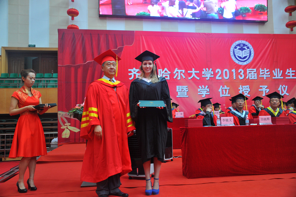 校领导为留学生毕业生代表颁发毕业证书