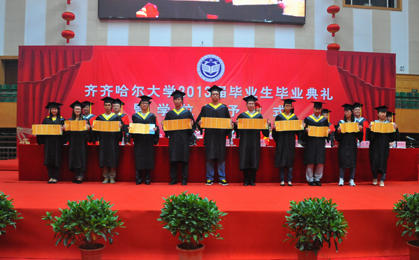 在隆重、热烈的颁奖、颁发毕业证书及授予学位仪式上,校领导分别为获奖毕业生颁奖。