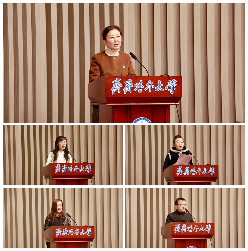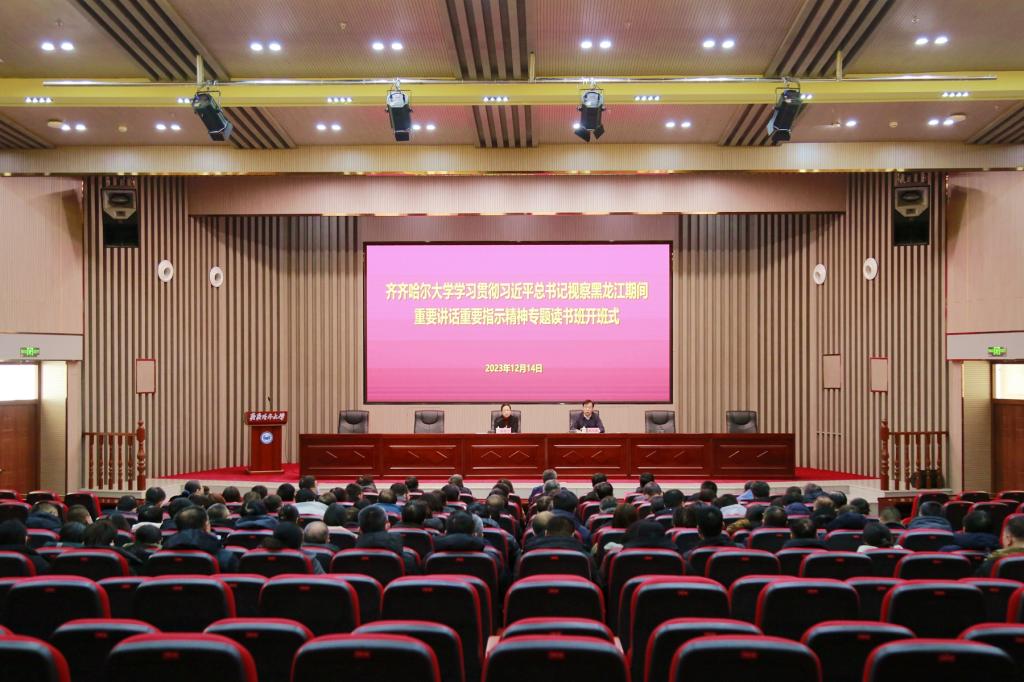 陈桂芝强调,习近平总书记视察黑龙江期间的重要讲话重要指示,是做好学校各项工作的总遵循、总纲领、总指引,务必要常学常新、善作善成,切实做到学思用贯通、知信行统一。一是要深刻把握习近平总书记视察黑龙江期间重要讲话重要指示精神的重要意义,切实增强学习贯彻的政治自觉、思想自觉和行动自觉,在深学细悟中深刻认识习近平总书记视察黑龙江、擘画新时代新征程全面振兴宏伟蓝图的重大里程碑意义。要以对习近平总书记的忠诚感恩之心,以担当奉献的境界情怀,以时不我待的精神状态,奋力谱写有特色高水平应用型综合大学新篇章,切实把习近平总书记擘画的宏伟蓝图变成美好现实,更好地服务国家战略、造福龙江人民。二是要准确把握学习贯彻习近平总书记视察黑龙江期间重要讲话重要指示精神的学习主题,把认真学习领会习近平总书记视察黑龙江期间重要讲话重要指示精神同学习习近平总书记对东北地区和我省历次重要讲话重要指示精神贯通起来,牢牢把握我省在强国建设、民族复兴新征程中的重大机遇,牢牢把握习近平总书记赋予我省建好建强“三个基地、一个屏障、一个高地”的战略定位,牢牢把握黑龙江维护国家“五大安全”的使命任务,以“身在最北方、心向党中央”的政治自觉和重振雄风、再创佳绩的责任担当,全面贯彻党的教育方针,全面落实立德树人根本任务,切实把对习近平总书记的忠诚爱戴转化为助力龙江高质量发展、可持续振兴和强国建设、民族复兴的生动实践,确保习近平总书记视察黑龙江期间重要讲话重要指示精神在齐大落地生根、开花结果。三是要正确把握学习贯彻习近平总书记视察黑龙江期间重要讲话重要指示精神的目标任务,进一步推动学习贯彻习近平总书记重要讲话重要指示精神往深里走、往实里走、往心里走,统一思想、统一意志、统一行动,凝心聚力,感恩奋进,奋力走出龙江高质量教育体系的齐大路径,坚定不移沿着习近平总书记指引的方向奋勇前行。四是要科学把握学习贯彻习近平总书记视察黑龙江期间重要讲话重要指示精神的实践要求,大力弘扬马克思主义学风,学原文、悟原理、知原义,在全面系统学、及时跟进学、深入思考学、联系实际学上下功夫,树牢正确政绩观,坚定“四为服务”办学方向,坚定“以学生为中心、以教师为根本”的办学理念,大力弘扬“艰苦奋斗、奉献边疆”的办学传统和“养正毓德、精存自生”的校训精神,以实际行动为龙江高质量发展、可持续振兴作出齐大新贡献。