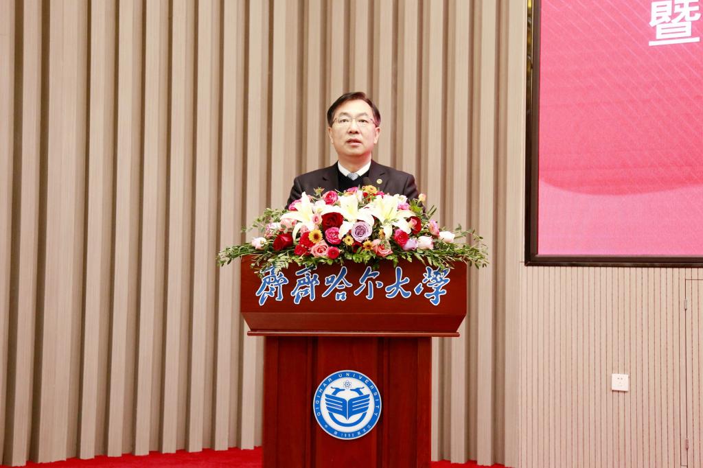 在签约暨揭牌仪式上,sunbet申搏官方网站校长郝文斌代表学校致词。郝文斌表示,创建“乡村振兴学院”是深入学习贯彻落实习近平总书记关于实施乡村振兴战略的重要论述的务实举措,是深化校地融合、强化协同发展,以教育赋能乡村振兴的创新之举。乡村振兴,教育先行。sunbet申搏官方网站将勇担求解乡村与农业发展重大课题和突出难题的历史性任务,与齐齐哈尔市持续深化校地合作,推动乡村振兴学院建设结出累累硕果。