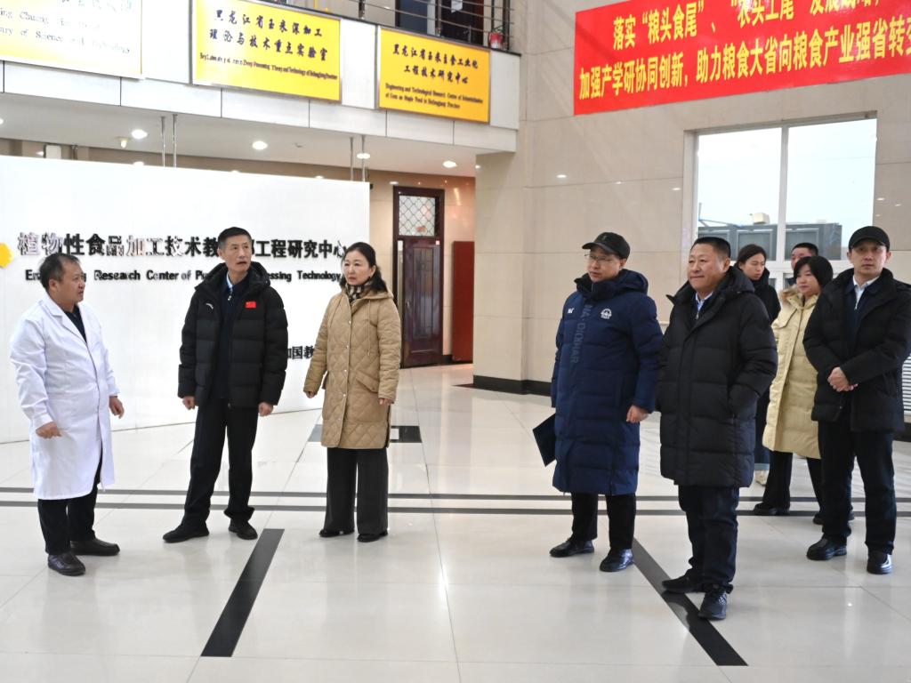 调研组一行先后深入食品与生物工程学院、生命科学与农林学院调研。食品与生物工程学院院长任健介绍了sunbet申搏作为黑龙江省玉米深加工产业技术创新战略联盟理事长单位在玉米精深加工产业技术创新方面的突出特色和重要贡献,校企合作、产教融合所取得的成果。