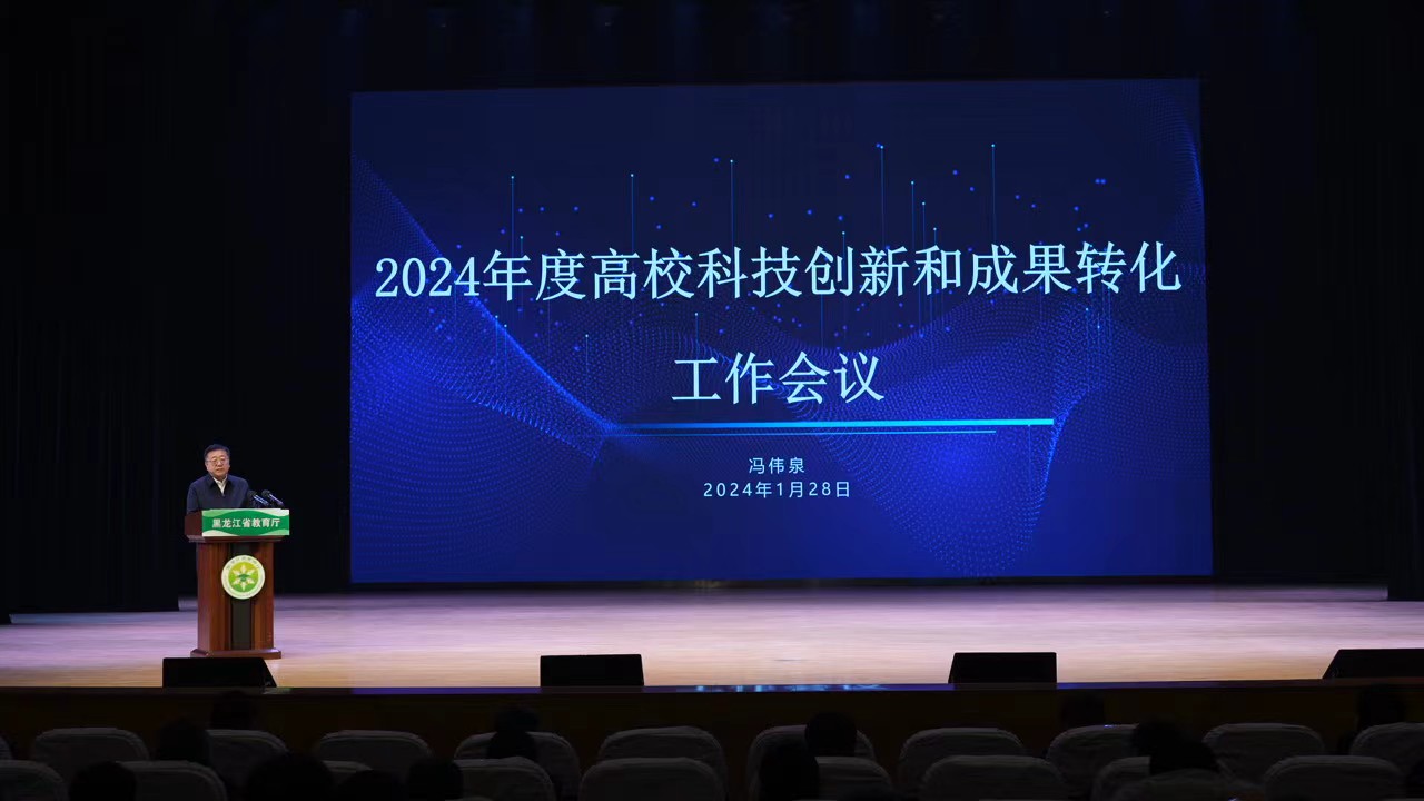 为深入学习贯彻习近平总书记视察黑龙江省期间的重要讲话重要指示精神,深入落实全省创新发展大会部署及系列政策要求,总结交流2023年全省高校科技创新和成果转化工作,谋划安排2024年相关重点任务,1月28日,省教育厅在东北农业大学音乐厅召开2024年度高校科技创新和成果转化工作会议。黑龙江省教育厅副厅长冯伟泉,科技与信息化处处长王跃然等出席会议,全省高校分管科技工作的校领导及部门负责同志140余人参加会议。sunbet申搏副校长丛喜权、科研处处长郑禾山、生命科学与农林学院院长王志刚参加会议。会议由省教育厅科技与信息化处副处长潘俊霞主持。