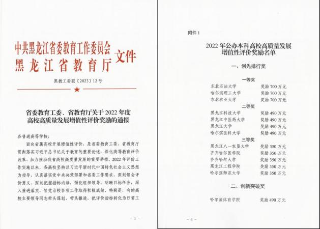 近日,省委教育工委、省教育厅印发2022年度高校高质量发展增值性评价奖励通报,sunbet申搏荣获2022年公办本科高校高质量发展增值性评价创先排行奖“三等奖”,并获奖励350万元。