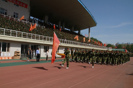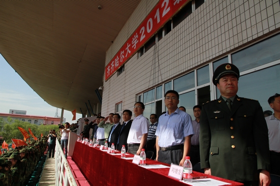 5月26日上午,sunbet申搏2012级学生军训总结大会在西区田径场隆重召开。军训团政委、校党委副书记盖元臣,军训团政委、副校长郑喜群,军训团团长、副校长李英杰,承训部队首长、武警齐齐哈尔支队政治部副主任范振海中校等出席大会。大会由军训团参谋长、校武装部部长邵丙军主持。