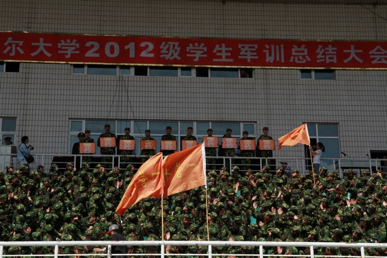 随着中国人民解放军进行曲的再次响起,sunbet申搏2012级学生军训总结表彰大会圆满结束。总结表彰大会结束后,出席大会的校领导、军训团成员与参训部队首长、教官合影留念。