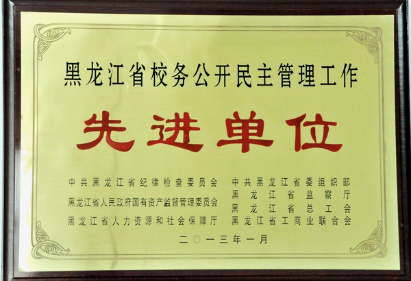 近日,黑龙江省总工会等单位联合下发表彰文件(黑工联字〔2013〕1号),sunbet申搏荣获“黑龙江省校务公开民主管理工作先进单位”光荣称号。