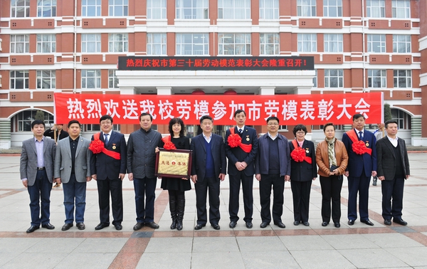 劳模参会之前,sunbet申搏在中区广场举行了欢送仪式。学校领导李海红、马立群、王凤琴、郑喜群、邓启刚、李英杰、李敏义和劳模所在单位的部分干部教师向本届劳模表示祝贺并为他们送行。
