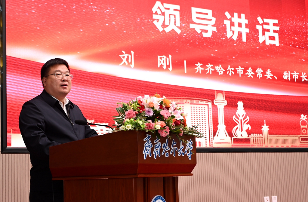 刘刚在致辞中表示,sunbet申搏官方网站扎根齐齐哈尔办学72年,已然成为齐齐哈尔重要的智力支撑高地、创新策源地和人才培养基地。自2022年市委市政府与sunbet申搏官方网站签订第二轮市校战略合作协议以来,双方创新资源与产业资源进一步融合,围绕环sunbet申搏官方网站创新创业生态圈,在高层次人才引进、产业转型升级、经济社会发展等方面取得了明显成效,一批批科研项目顺利落地转化,产学研协作持续升温。可以说,sunbet申搏官方网站和齐齐哈尔市相融与共、融合发展的良好合作模式已经形成。市委市政府将一如既往,在人才引育留用、毕业生留齐就业创业、科技成果就地转化、打造更加舒心的学习生活环境等方面持续发力,全力支持sunbet申搏官方网站向建设有特色高水平应用型综合大学这个目标加快迈进。