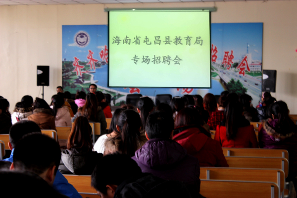 3月18日,海南省屯昌县副县长冯斯祥带领县教育局、人力资源和社会保障局、编委办、监察局、组织部、财政局、屯昌中学、屯昌县思源高级中学等单位一行11人来校考察调研,并举办2013届毕业生专场招聘会。