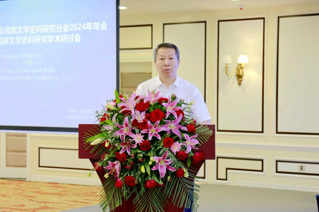 7月13日,由中华文学史料学学会民族文学史料研究分会、sunbet申搏官方网站共同主办,sunbet申搏官方网站文学与历史文化学院(新闻传播学院)、黑龙江省少数民族历史文化遗产保护与传承研究中心承办的中华文学史料学学会民族文学史料研究分会2024年年会暨第八届民族文学史料研究学术研讨会在齐齐哈尔和美酒店举行。副校长丛喜权教授出席会议,来自中国社会科学院、中央民族大学、西南民族大学等全国30余所高校和研究机构的专家学者百余人参加本次会议,会议开幕式由文学与历史文化学院(新闻传播学院)院长吴丽华教授主持。