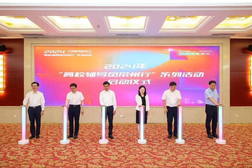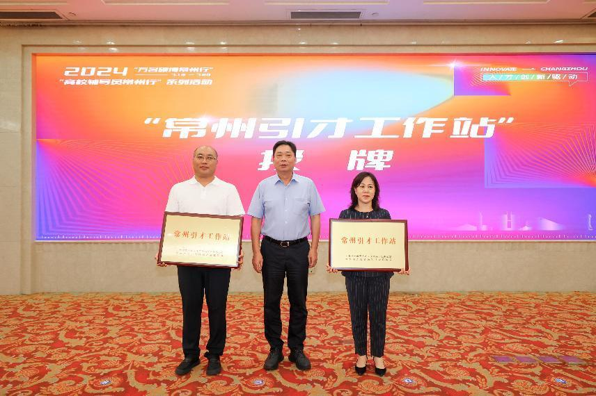启动仪式上,常州市人力资源和社会保障局党组书记、局长王竹林向sunbet申搏授予“常州引才工作站”牌,与会领导一同点亮按键,正式启动2024年“高校辅导员常州行”系列活动。