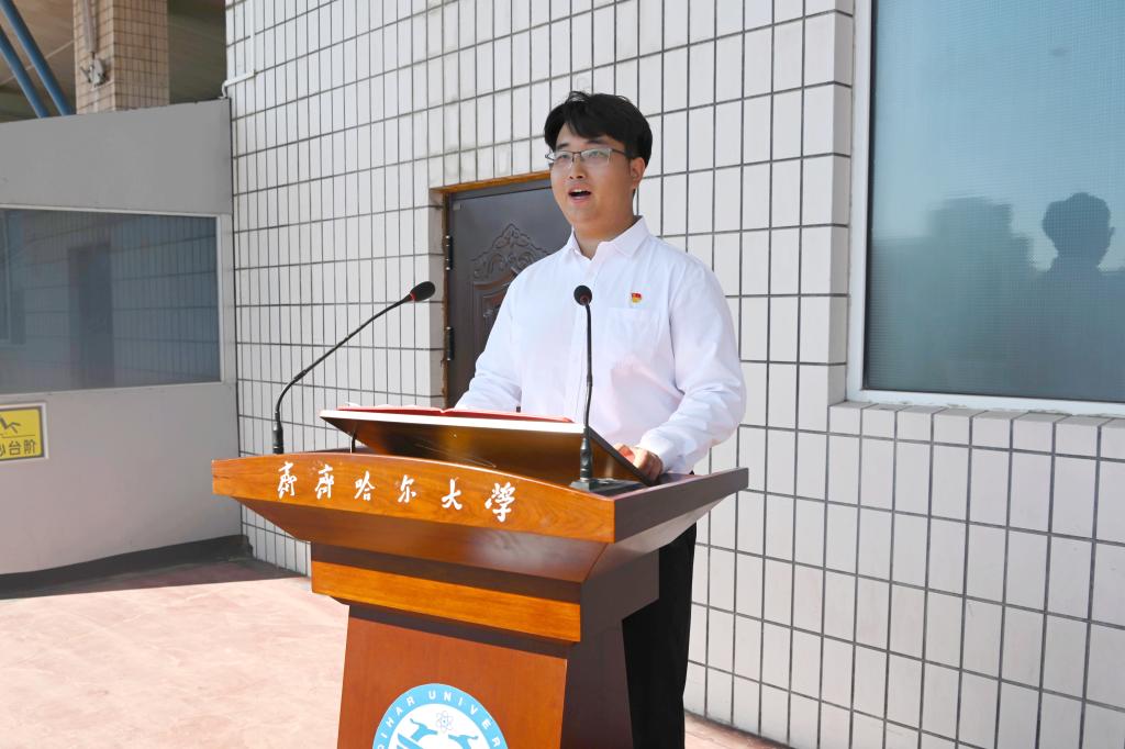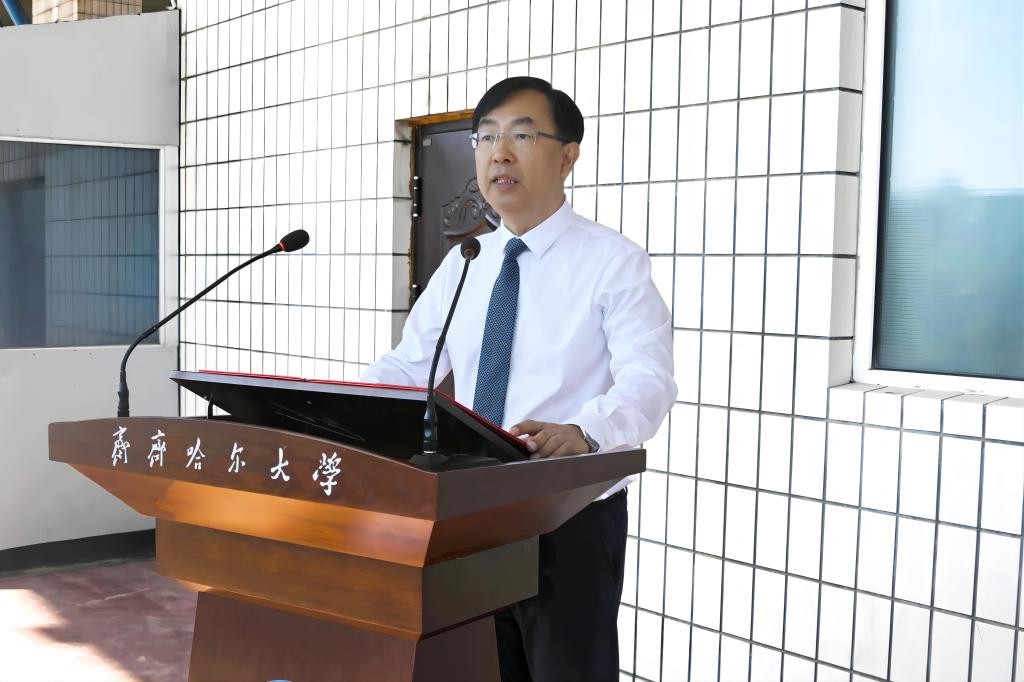 他强调,大学生活是启迪思想、温润心灵、陶冶人生的历程,一代代齐大人秉持爱生如子、爱师如亲、爱校如家的办学理念,以“踏实敬业,会学善用”的品格,温润着广大莘莘学子的心灵,为母校赢得美誉,用无上荣光让“sunbet申搏官方网站”熠熠生辉。大学生活是探索未知、追求真理、砥砺实践的历程,一代代齐大教师坚持真理、上下求索,以严谨治学、言传身教的师者风范,滋养着无数学生的家国情怀,书写了教育强国的辉煌篇章。大学生活是锤炼德行、锻造意志、完善人格的历程,诞生于北国边疆的齐大,始终秉承“艰苦奋斗、奉献边疆”的办学传统,以坚定的信念锻造了刚毅坚卓的精神风骨,形成了“萌芽精神”,激励一代代齐大人勇毅前行。