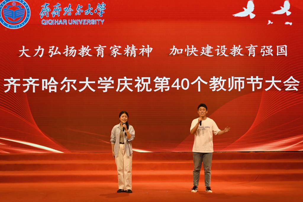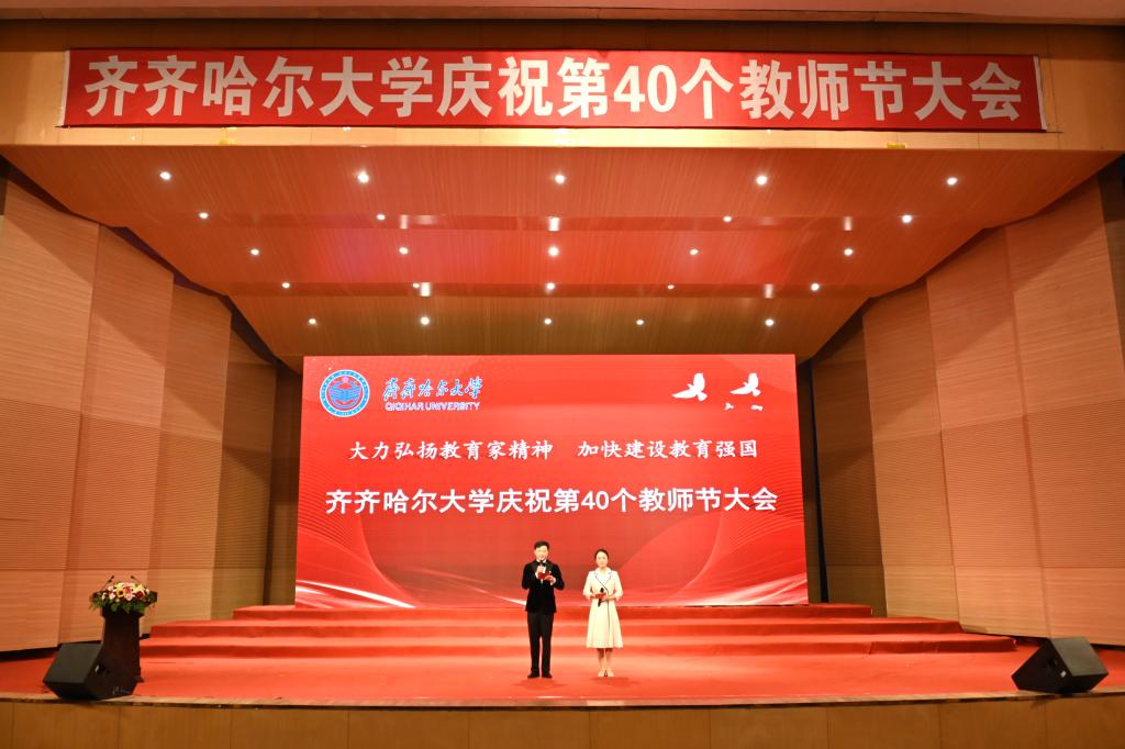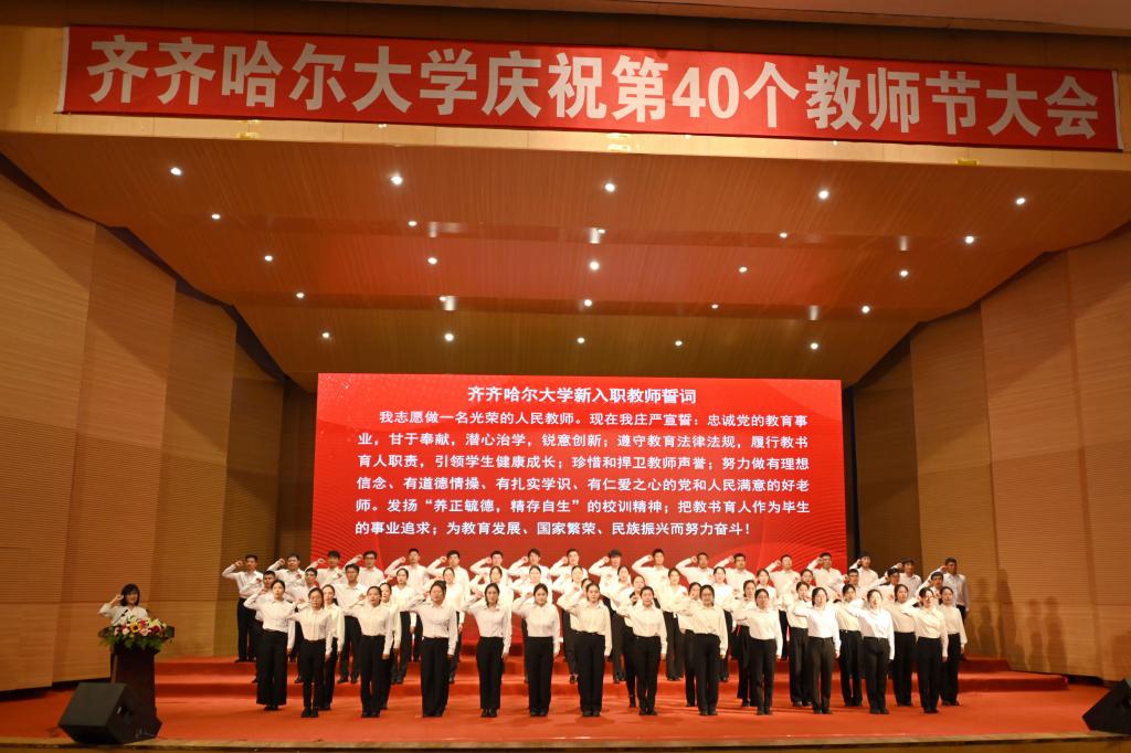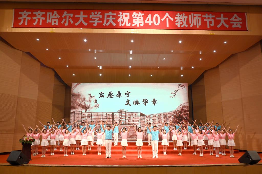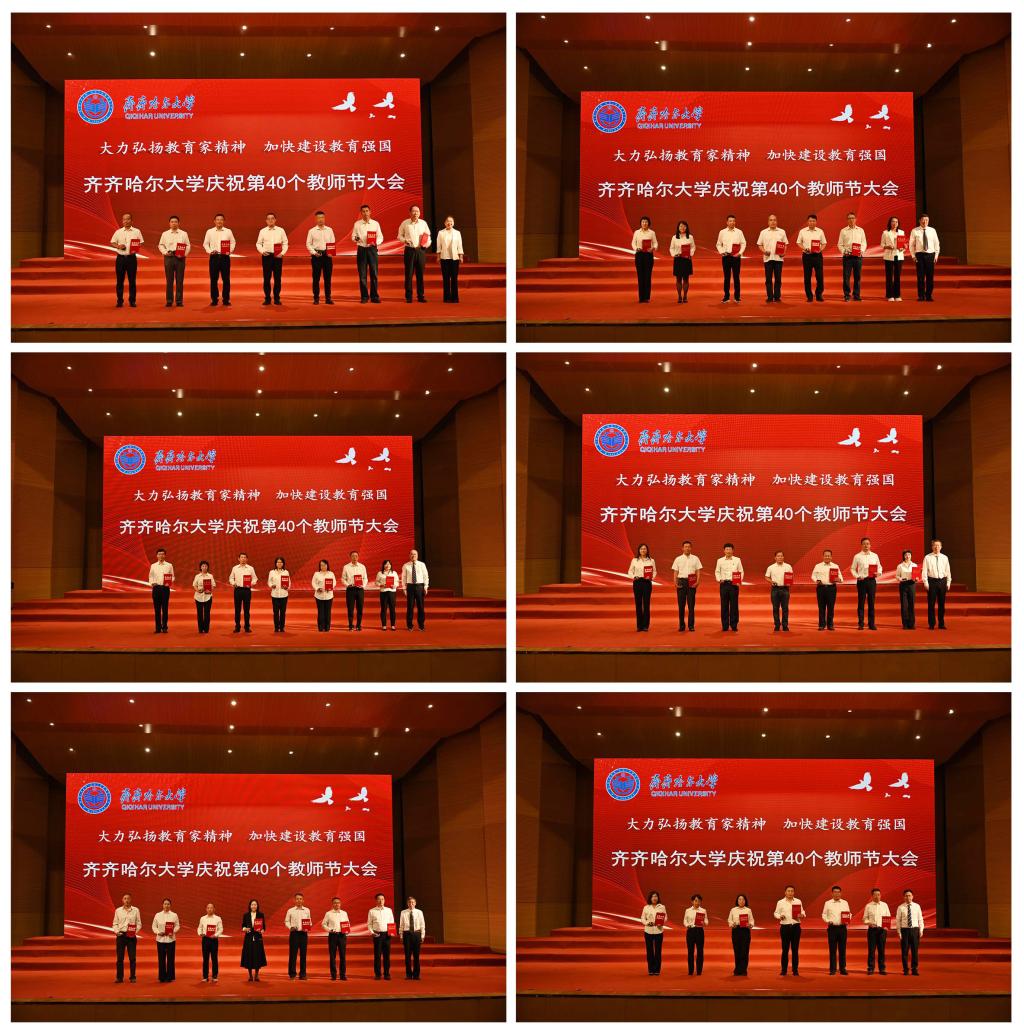 郝文斌强调,学校在70余年办学历程中形成的“大爱、大道、大学”的校风,“为人、为学、为师”的教风,“致知、致用、致远”的学风,是引领和激励一代代齐大人勇毅前行的精神力量。从1985年设立第一个教师节的40年来,sunbet申搏官方网站广大教师,扎根北疆、躬耕教坛、砥砺前行、善作善成,用满腔热血和辛勤汗水书写了感人至深、催人奋进的教育篇章。新时代以来,sunbet申搏教师争做教学能手、科研骨干、育人模范、师德标兵,在为党育人、为国育才事业中成为优秀榜样,成为地方经济建设的重要推动力。正是在这样的“大先生”精神品格引领感召下,齐大一批批学子毕业后选择从教,在教师岗位上传承着“养正毓德、精存自生”的校训精神,一批批优秀学子,为母校赢得了荣誉尊严,“齐大人”的身份永远与他们相随相依。