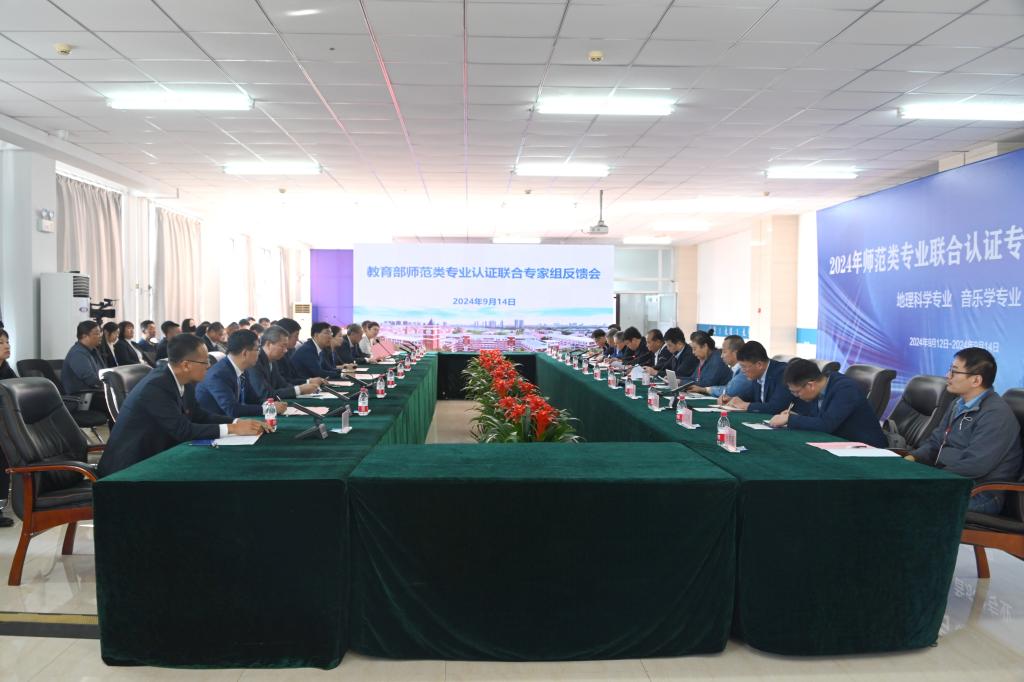 9月14日上午,学校在东区图书馆八楼报告厅召开2024年教育部师范类专业认证联合专家组意见反馈会。专家组联合大组长兼音乐学专业认证专家组组长李广平教授、地理科学专业认证专家组组长张新民教授以及两个师范类专业认证专家组全体成员,sunbet申搏领导班子成员出席会议,相关职能部门及公共课开课学院负责人、参与认证专业所在学院班子全体成员及参评专业负责人参加会议。会议由李广平主持。