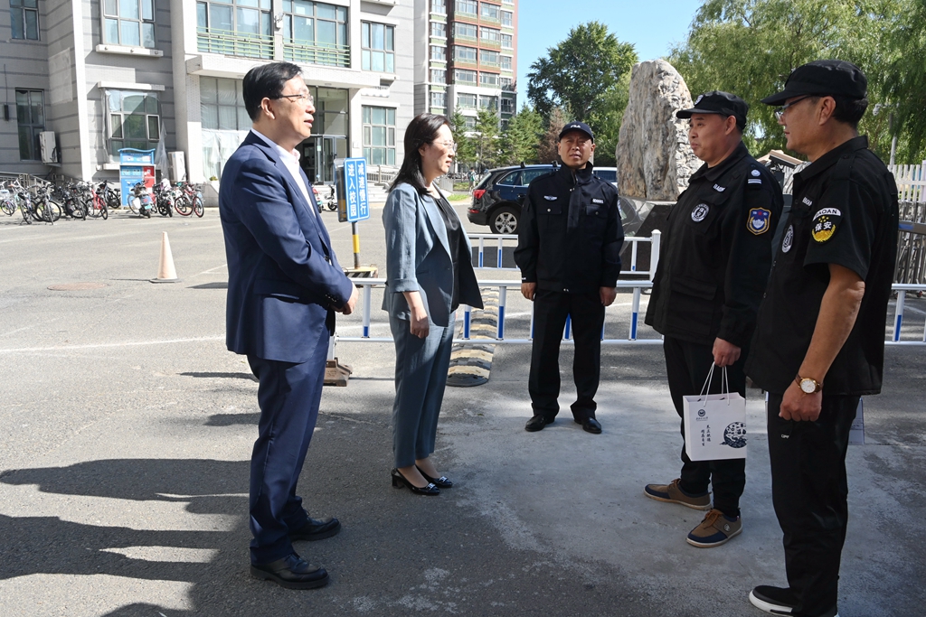 9月17日是一年一度的中秋佳节,上午九时,校党委书记丁宏、校长郝文斌、校党委副书记张文治、副校长丛喜权在相关部门负责人陪同下,深入校园安全防控、服务保障等重点岗位看望慰问在岗一线教职员工及外籍教师代表,向他们致以节日的问候和美好的祝愿。