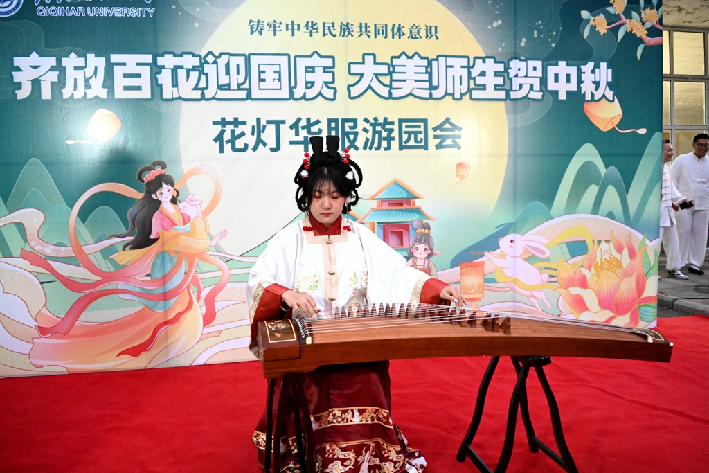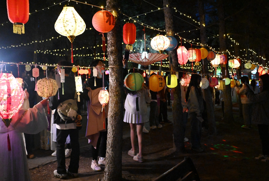 月光湖影遥相映,师生情溢齐大园。本次活动共划分“华灯璀璨”“华服锦绣”“华风典雅”三个单元,设置了DIY花灯、团扇制作、古风发饰体验、香包制作、茶艺体验、中国结制作、书法、投壶等多个精彩环节。老师和同学们或亲手制作花灯,体验传统工艺的魅力;或学习团扇制作,感受古典艺术的韵味;或制作古风发饰,体验穿越时空的魅力……游园会现场人流涌动,师生们穿着古风华服,在古筝的伴奏下,徜徉在花灯映照下的长廊,共同欣赏着中秋的明月,享受着这温馨而难忘的时刻。这一夜的美丽环湖大学,守正与创新交融,古典与现代相遇,繁华与静怡共存,成为了共度佳节的每一位师生最美好的记忆。