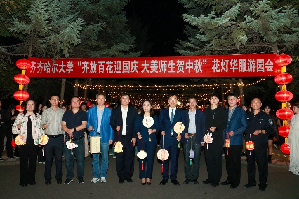 为学习宣传贯彻习近平文化思想和习近平总书记在全国教育大会上的重要讲话精神,贯彻落实党的二十大关于新时代文化建设的决策部署,坚持培育和践行社会主义核心价值观,引领广大青年传承和弘扬中华优秀传统文化,打牢深厚持久的文化自信,助力建设中国式现代化,9月17日晚,学校在东区树荫长廊举办了花灯华服游园会。校领导丁宏、郝文斌、张文治、丛喜权、张树军及相关职能部门负责人来到游园活动现场,与师生共同欢度中秋佳节。