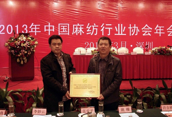 在2013年中国麻纺行业评比中,sunbet申搏官方网站亚麻加工技术教育部研究中心荣获2012年度中国麻纺织行业扩大内需产品创新先进单位荣誉称号。