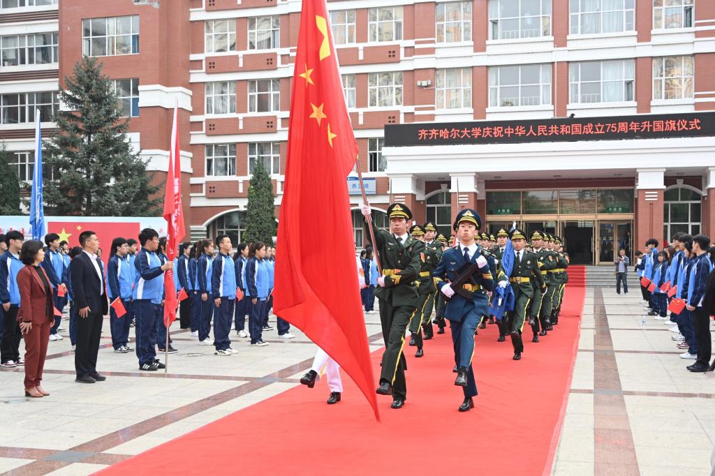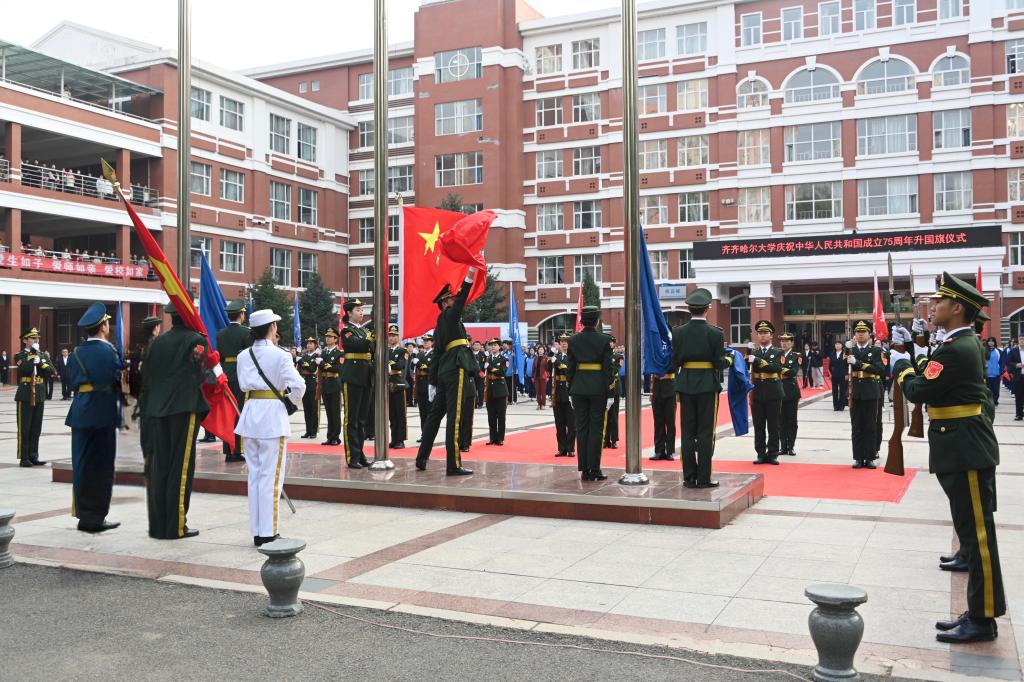 心怀赤诚,向阳而生。本次升旗仪式由“国旗下的演讲”“国旗下的誓言”“国旗下的颂歌”和“国旗下的第一课”四个篇章组成。学校“青年学生党的创新理论宣讲团”开展了以凝心聚力担使命、奋楫扬帆新征程为主题的“国旗下的演讲”;现场全体团员青年以激昂的声音和振奋的精神,许下了“国旗下的誓言”,表达了新时代齐大青年“请党放心、强国有我”的心声;音乐与舞蹈学院师生“国旗下的颂歌”快闪共鸣全场,领导师生齐挥国旗、共唱《我和我的祖国》,唱响了礼赞新中国、奋进新时代的齐大最强音。