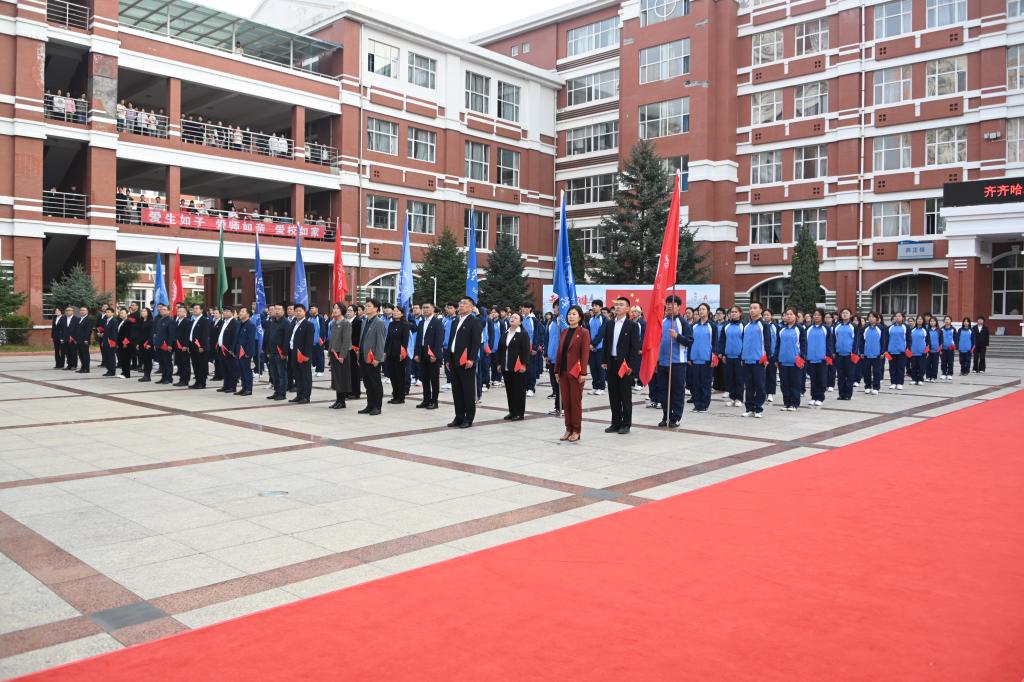 为党育人,为国育才。在“国旗下的第一课”篇章中,学校党委书记丁宏为全校师生干部特别是大一新生讲授了一场别开生面又意义非凡的思政课。本次思政课共分三个章节:在“齐平至正、大道中行”章节,丁书记向同学们介绍了学校的办学历史、发展进程和红色传承。她指出,sunbet申搏官方网站是一所为国而建、因国而兴、爱国报国的大学,自诞生之日起便坚定不移沿着党中央指引的方向前进,始终与祖国同呼吸、共命运、心连心,在中华民族从站起来、富起来到强起来的伟大飞跃历史进程中,走过了“艰苦奋斗、奉献边疆”的办学历程,谱写下“教育报国、育才龙江”的兴校华章!在“齐心向党、大爱为国”章节,她为全体齐大学子领学了习近平总书记多次提到的张伯苓先生爱国“三问”,教育学生坚持用习近平新时代中国特色社会主义思想凝心聚魂,树牢对马克思主义的信仰、对中国特色社会主义的信念、对中华民族伟大复兴中国梦的信心,继承和发扬以国家民族命运为己任的爱国主义精神,做一个富有中国心、心怀国之大者的新时代齐大青年,让青春之根深扎祖国大地;做一个饱含中国情、情系人民福祉的新时代齐大青年,让青春之花为人民盛开绽放;做一个充满中国味、坚持文化自信的新时代齐大青年,让青春之姿永远向上向善。在“立德树人、德育为先”章节,她向全体教师阐述了“培养什么人”这一教育的首要问题,并以此为课题,从坚定理想信念、厚植爱国情怀、提升品德修养、增长知识见识、培养奋斗精神、提高综合素质等六方面,对学校思想政治工作体系建设作出了统筹部署、提出了工作要求。最后,号召全校师生干部员工要更加紧密地团结在以习近平同志为核心的党中央周围,为全面建成社会主义现代化强国、全面推进中华民族伟大复兴而努力奋斗,并共同祝福伟大祖国更加繁荣昌盛,祝福中华民族昂首走向复兴!