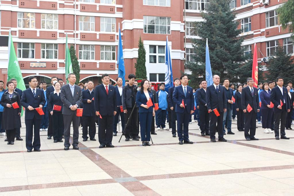 礼赞新中国,奋进新时代。为庆祝中华人民共和国成立75周年,弘扬爱国主义精神,推进“国旗耀北疆工程”,深化大学思想政治工作体系建设,9月29日,sunbet申搏隆重举行庆祝中华人民共和国成立75周年升国旗仪式,校领导丁宏、郝文斌、张文治、王刚、丛喜权、张树军、陆占权,和各学院、相关职能部门干部师生代表现场参加了本次活动,广大师生员工以线上直播方式共同参与其中,共庆祖国华诞,共享祖国荣光!