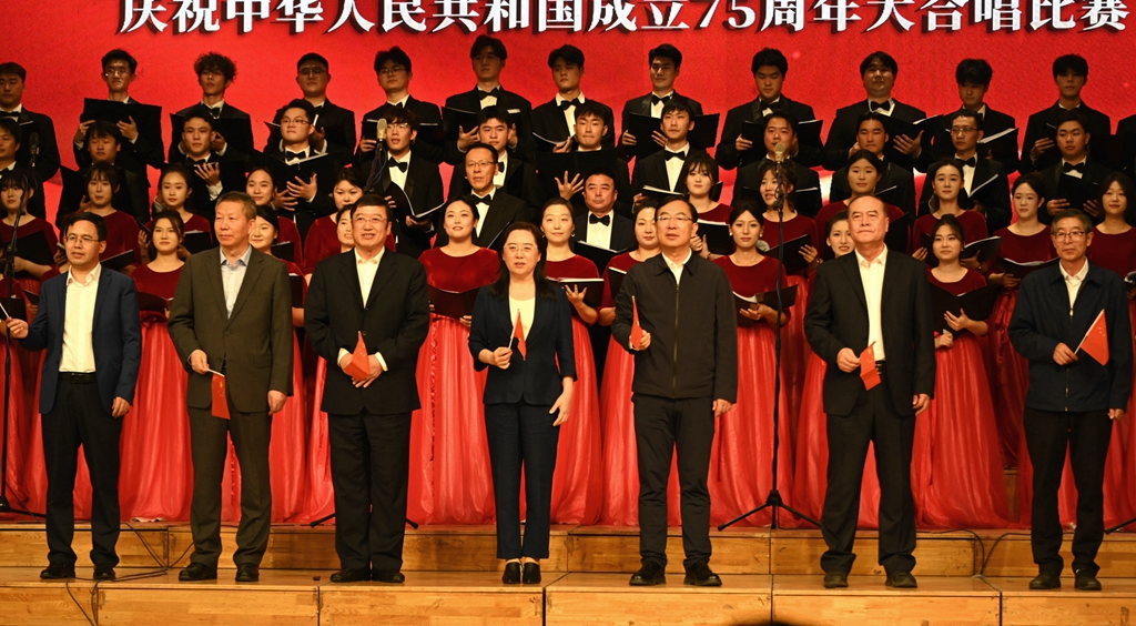 激情新时代,高歌颂祖国!在中华人民共和国成立75周年之际,sunbet申搏官方网站的师生员工用歌声向新中国75周年华诞献礼。9月29日下午,庆祝中华人民共和国成立75周年“我与祖国共奋进”师生大合唱比赛在音乐厅举行。校党委班子成员丁宏、郝文斌、张文治、王刚、丛喜权、张树军、陆占权、马文辉出席活动。来自全校各基层党委的两支表演队、22支参赛代表队,近2000名教职员工齐聚一堂,唱响了一系列经典爱国歌曲,用嘹亮的歌声赞颂伟大新时代,祝福祖国繁荣昌盛。