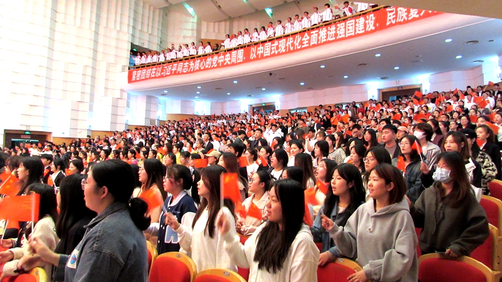 音乐与舞蹈学院师生为现场师生献唱了经典歌曲《亲爱的中国》《不忘初心》,饱含深情的歌声激发了听众的情感共鸣,赢得阵阵喝彩,将整场大合唱活动推上了高潮。
