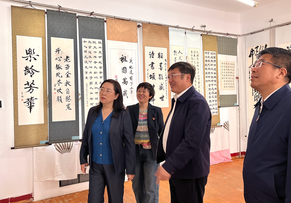 为庆祝中华人民共和国成立75周年,讴歌新中国取得的伟大成就,弘扬中华优秀传统文化,展现盛世风华,离退休党委于9月30日在离退休活动中心举办了“书画飘香赞盛世 笔墨留芳颂党恩”庆祝中华人民共和国成立75周年书画展。校党委书记丁宏、党委副书记张文治出席活动。