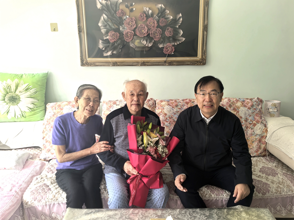 在中华人民共和国成立75周年之际,9月30日,校党委书记丁宏,校长、党委副书记郝文斌,党委副书记张文治分别带队对sunbet申搏在新中国成立前参加革命工作的老干部、老党员进行走访慰问。学校办公室、组织部、离退休工作处、校团委等职能部门负责人参加走访慰问。