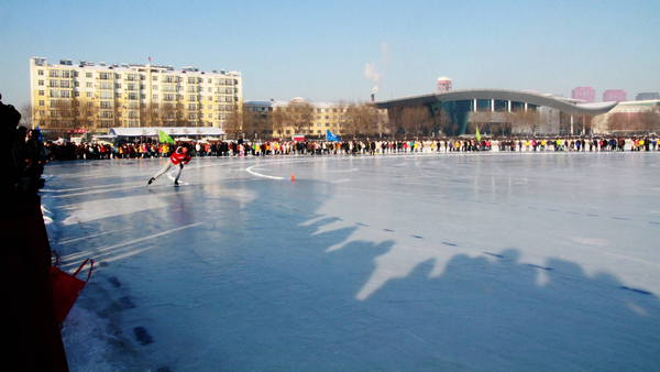 本届冰上运动会采用国家体育总局冬运中心审定的最新的《速度滑冰竞赛规则》,设置了“男子500米、女子500米速滑”竞赛项目,设置了“一条龙100米”、“纤夫拉爬犁50米”、“定时快捡小布球20个”等游戏项目,吸引了众多同学的热情参与,充分体现了冰上运动会的群体性。
