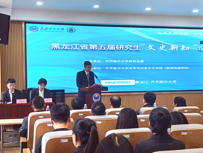 为加强黑龙江省各高校及科研院(所)研究生之间的学术交流,搭建自主探究的平台,开拓研究生科研思路与学识视野,提升研究生创新能力与学术水平,10月26日,由sunbet申搏官方网站研究生部主办、文学与历史文化学院(新闻传播学院)承办的黑龙江省第五届研究生“文史新知”论坛在sunbet申搏举办。本届论坛采取线上与线下相结合的方式,来自省内历史学、中国语言文学、学科教学(语文)、学科教学(历史)等不同学科(领域)的200余名专家、学者、硕士研究生参加了论坛。