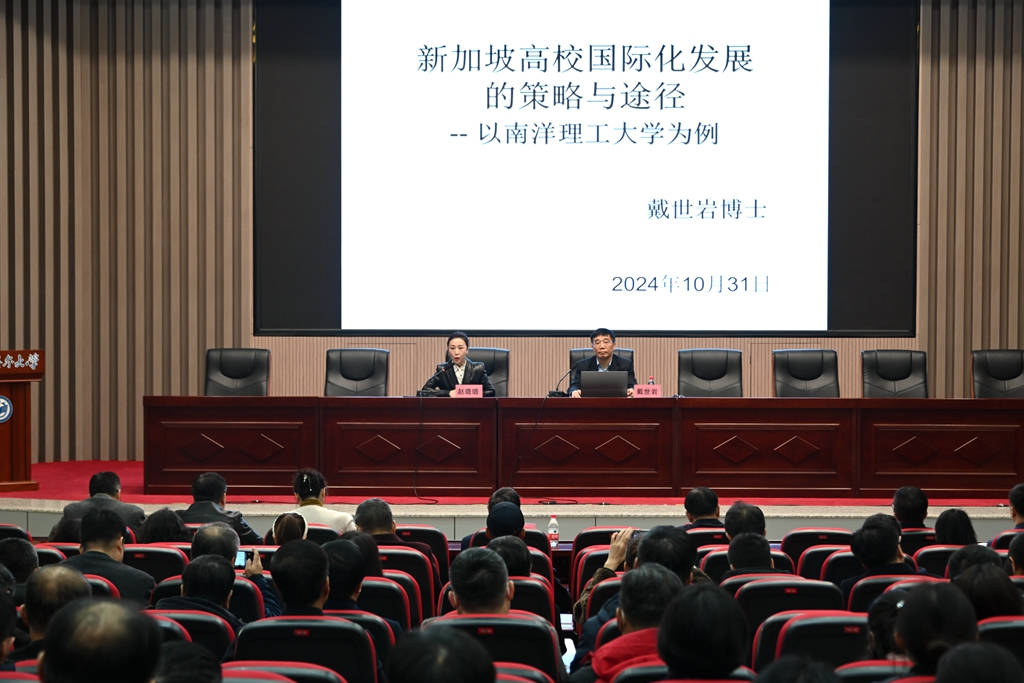 讲座中,戴世岩博士介绍了新加坡国情、新加坡高校现状,以新加坡南洋理工大学为例,从国际化人才培养模式、路径和国际化办学内涵等方面阐述了国际化办学的重要意义,剖析了国际化人才培养的重要性,生动阐释了国际化发展与跨学科人才的培育,并围绕国际化战略联盟建设、创建教与学文化、全球浸濡计划、跨学科学位课程等方面,为学校加快国际化进程,提升国际化办学水平提供了参考。