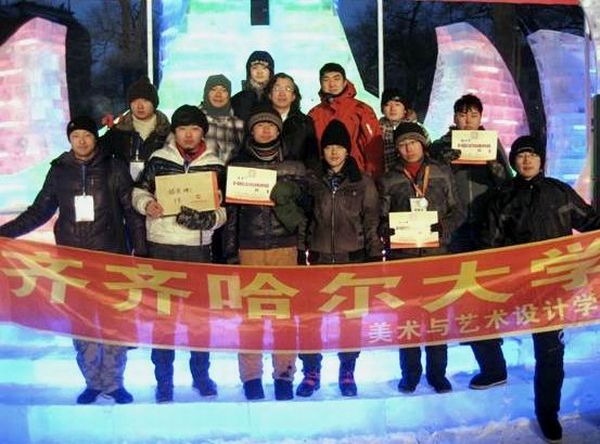 三组学生代表作品分获第七届全国大学生冰雕比赛银奖、第七届全国大学生冰雕比赛设计奖和第十届黑龙江省大学生冰雕比赛银奖。