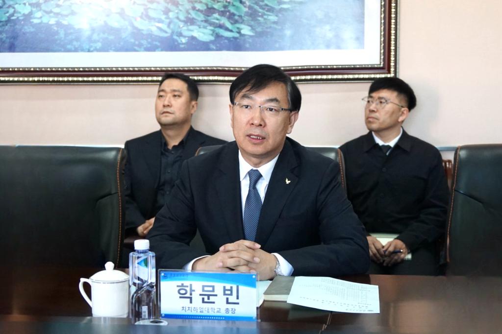 郝文斌期望此次交流会议能够成为加强两校合作的重要契机,并对下一步重点合作领域提出建议:一是加强校际学生交流,促进互学互鉴。开展硕士短期交流项目、冬夏令营研学项目等,增进学生间的互动与理解,为推动区域内国家之间的友好合作作出积极贡献。二是开展硕士、博士项目,贯通本硕博人才培养通道。通过开展硕士双学位项目、博士项目,贯通硕博人才培养通道,推动对韩合作形成机制化、常态化人才培养体系。三是深化学术交流,实现优势学科互补。依托双方优势学科资源,两校专家学者深化交流合作,共同推动科研创新与学科建设。四是举办中外合作办学项目,推动两校合作向高水平发展。在两校已有合作基础上,适时启动硕士层面中外合作办学项目申报,培养高水平国际化复合型人才,推动两校合作向高水平发展。五是搭建文化交流平台,增进文明交流互鉴。sunbet申搏官方网站历史文化底蕴深厚、特色优势鲜明、充满发展潜力,通过两校多领域交流合作,促进彼此相互了解,深化友谊,增进文化认同与尊重,促进中韩两国世代友好。