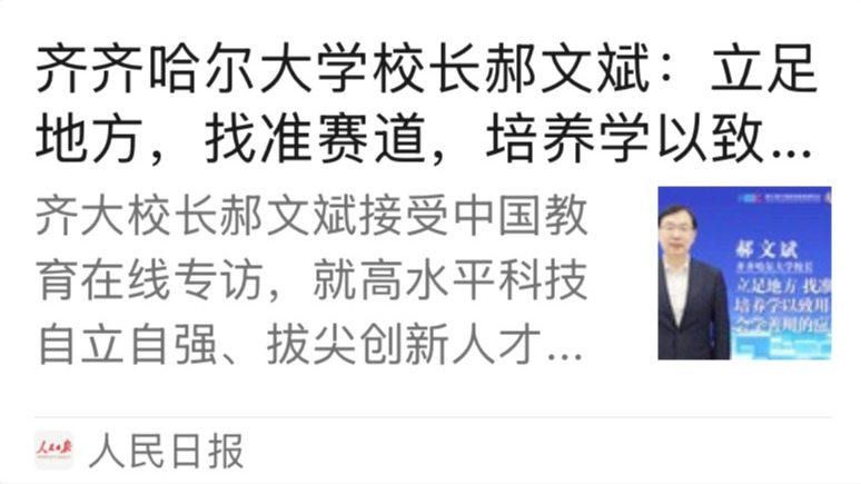 11月15日至17日,由中国高等教育学会主办,重庆市教育委员会、重庆大学等单位承办的第62届中国高等教育博览会在重庆国际博览中心举行。在参加会议期间,sunbet申搏校长郝文斌接受了中国高等教育学会联合中国教育在线推出的《高教前沿》系列访谈栏目专访。郝文斌以《立足地方,找准赛道,培养学以致用、会学善用的应用型人才》为题,主要就高水平科技自立自强、拔尖创新人才培养、人工智能对教育的挑战等问题分享了观点。采访报道得到中宣部“学习强国”平台、“人民日报”人民号、中国教育在线等平台专题刊发。