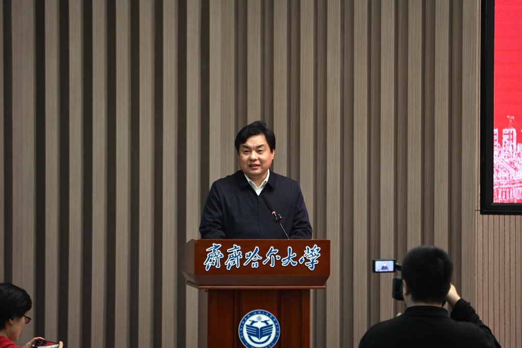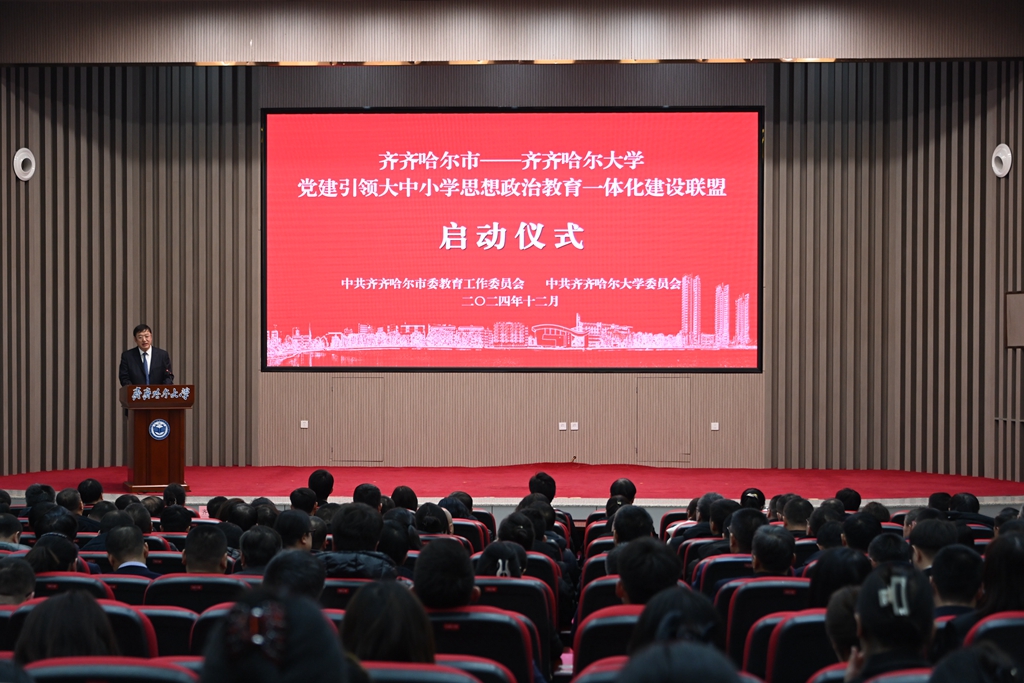 12月10日下午,齐齐哈尔市—sunbet申搏官方网站党建引领大中小学思想政治教育一体化建设联盟启动仪式在日新大厦四楼报告厅举行。齐齐哈尔市委副书记、市委教育工委书记刘振江,齐齐哈尔市副市长高淑春,sunbet申搏党委书记丁宏,校长、党委副书记郝文斌,党委副书记齐宏伟,黑龙江省民宗委文化宣传教育处处长吴鹏,齐齐哈尔市教育局局长、市委教育工委副书记姜林出席仪式。仪式由校党委副书记张文治主持。