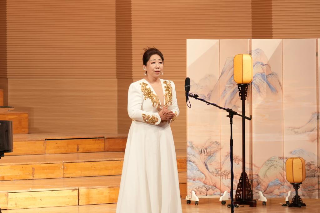《锦瑟》《更漏子·玉炉香》《虞美人·春花秋月何时了》《破阵子·为陈同甫赴壮词以寄之》《越人歌》《青玉案·元夕》《山之高》《江畔独步寻花》《念奴娇·赤壁怀古》《葬花吟》《秋风词》《蝶恋花·槛菊愁烟兰泣露》,一首首大家耳熟能详的古诗词作品配上一段段优美动听的旋律,以独唱、重唱、合唱的形式相继在音乐厅里徐徐上演,古与今、诗与歌、音与画和谐交融,令观众们在古诗词与音乐交相辉映的意境之中陶醉不已。