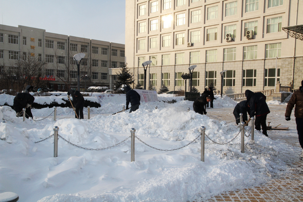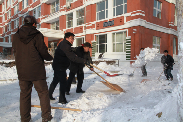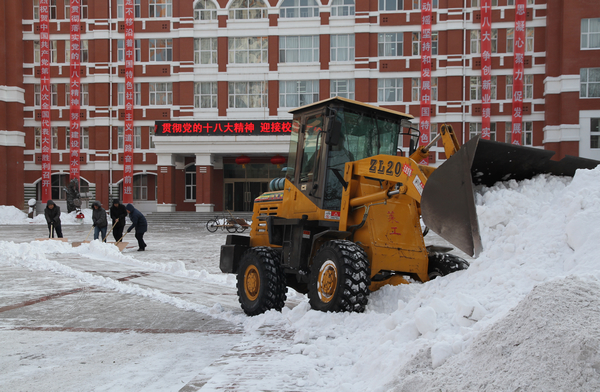 连日的降雪,使校园里、操场上、道路边形成了厚厚的积雪,给师生出行带来了不便,并隐藏着一定的安全隐患。28日上午,在校党委书记李海红、校长马立群的带领下,党政机关干部、教师和学生纷纷走出办公室和教室,在校园里清扫积雪,保证校园道路安全,保障学校教育教学有序开展。在校校领导也参加了义务清扫积雪劳动。
