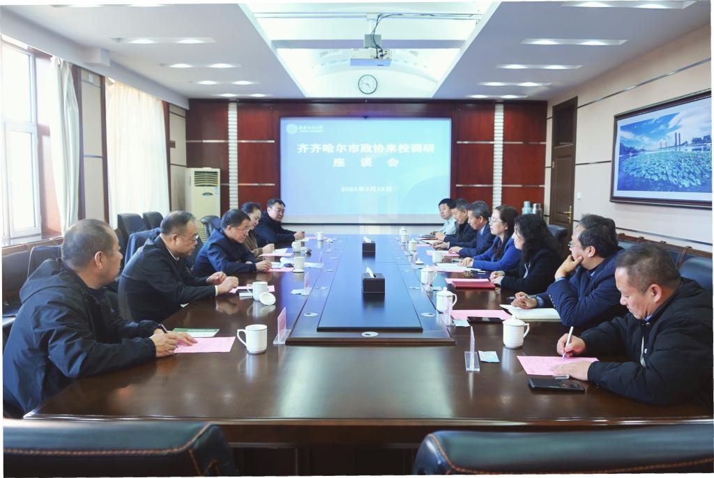 丁宏代表学校向刘海城一行的到来表示热烈欢迎,向市政协长期以来的大力关心支持致以衷心感谢。她指出,高校是教育、科技、人才的集中交汇点,学校高度重视科技成果转化工作,希望与齐齐哈尔市政协进一步密切协作,推动科技创新成果与地方经济深度融合,为齐齐哈尔市高质量发展提供强有力的科技支撑。