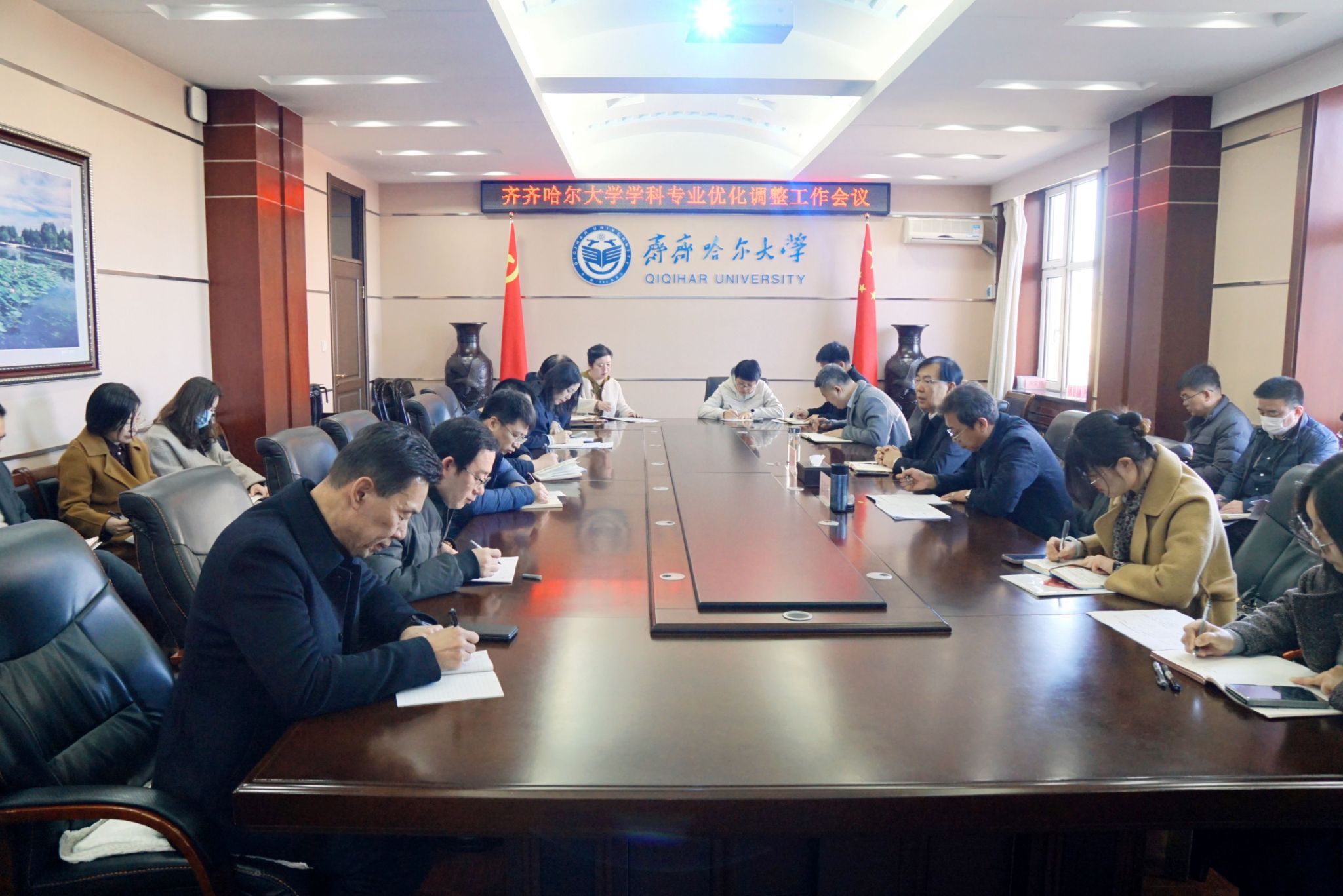 郝文斌指出,要充分认识学科专业优化调整的重要意义,明晰学科专业优化调整的重点指标,围绕国家战略需求和新兴产业布局进行专业结构调整优化,真正实现有进有出、有增有减。郝文斌对下一步学科专业优化调整工作提出明确要求:一是要真正掌握国家、省关于学科专业优化调整的政策指向,整体谋划本科生教育、研究生教育;二是要围绕新质生产力的发展需求,优化调整学科专业,加强课程体系改革,系统推进“四新”学科建设;三是要围绕国家战略需求和新兴产业布局,进行专业结构优化调整,真正实现有进有出有增有减;四是要加大对基础学科的支持力度,不断挖掘基础学科新的增长点,推动学校应用型转型升级;五是要打破学科专业之间的壁垒,大力推动交叉学科建设,支持跨学科的科研团队、科研平台建设,推动跨学科的联合培养,实现学科专业之间的强强联合;六是要建立健全多元动态学科专业评估监测机制,实现多部门联动,定期研究学科专业建设中存在的堵点、卡点、痛点问题,营造良好的学术环境、文化环境、制度环境,真正为学科专业优化调整保驾护航。
