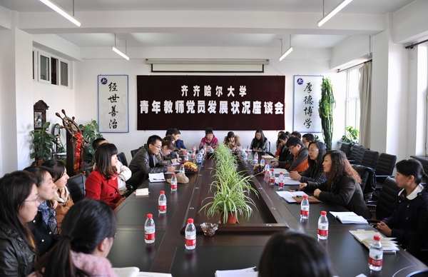 汇报会后,调研组分别召开了党员青年教师代表和非党青年教师代表两个座谈会。座谈会气氛热烈,20多名青年教师代表畅所欲言,纷纷围绕组织的关怀和培养、身边党员干部和党员教师示范引领作用的发挥、自身理想信念的坚定、入党积极性的明显提高以及强烈职业归属感的产生等话题畅谈了工作学习中的体会和感受。随后,调研组又组织部分党员青年教师和非党青年教师填写了《黑龙江省普通高校青年教师党员发展状况调查问卷》。