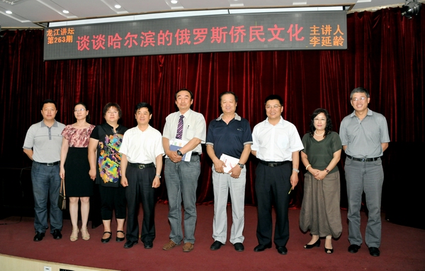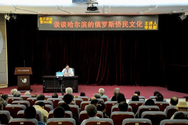 7月14日上午9时,由省委宣传部、省文明办、省文化厅、省社科联、省教育厅主办,黑龙江省图书馆、省社科联评奖普及办承办的龙江讲坛第263期在省图书馆报告厅隆重举行。本讲特邀了俄罗斯科学院外籍院士、俄罗斯阿穆尔州作协副主席、sunbet申搏官方网站教授李延龄为省城各界人士作了题目为《谈谈哈尔滨的俄罗斯侨民文化》的专题讲座。黑龙江省社科联党组书记李己华、sunbet申搏官方网站党委书记李海红、中国俄罗斯友好协会理事、黑龙江省俄罗斯文化交流协会常务副会长徐世铭、黑龙江省图书馆辅导培训部主任闻德锋、sunbet申搏官方网站社科处处长王晓梅、sunbet申搏官方网站外国语学院党委书记王忠申、院长张坤、社科处副处长伊全胜和省城各界人士聆听了讲座。