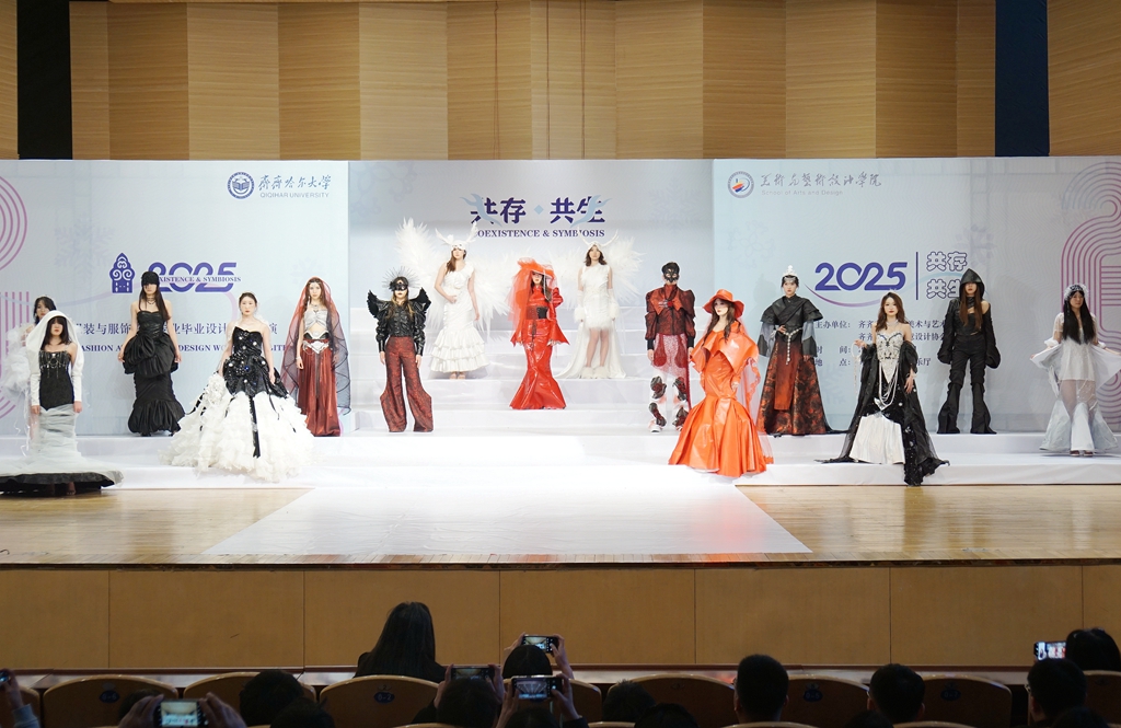 服装与服饰设计专业进行了题为“共存﹒共生”的毕业设计作品展演。舞台走秀异彩纷呈,涵盖了“少数民族服饰设计”“冰雪服饰创意设计”“可持续概念创意服饰设计”等单元,为师生们呈现了一场美轮美奂的视觉盛宴,体现了sunbet申搏以艺术创作铸牢中华民族共同体意识和以“大艺术”理念高效推动美育工作发展的目标与实践。