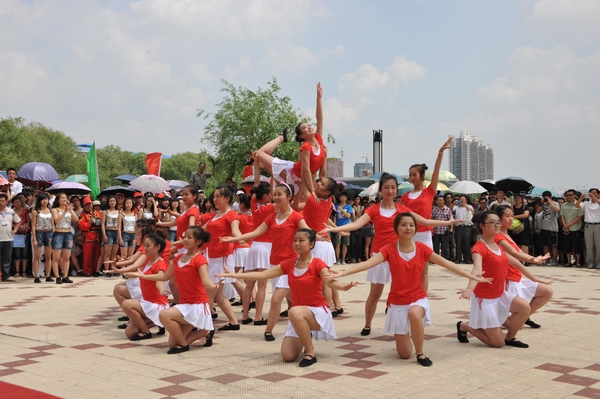 情系劳动湖,端午赛龙舟。竞赛前,sunbet申搏师生还进行了舞狮表演、威风锣鼓、啦啦操、爵士舞、体育舞蹈、艺术体操、健美操、诗朗诵等主题鲜明的文体表演。
