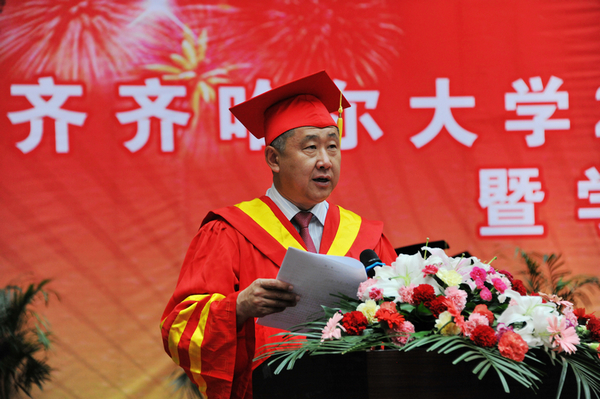 亲爱的2012届同学们,这里就要说告别了,请整理好你们的行装,背上你们的行囊,从这里勇敢地扬帆启航吧。无论你走向何方,母校都会在这里驻足遥望,倾听远山的回响,等待你一叶扁舟的归航。走累了,就歇一歇,想家了,就回来看看,母校永远为你们敞开大门,齐大永远是你们的精神港湾。最后,真诚的祝福你们,期待着你们创造出无比精彩的未来!谢谢大家!