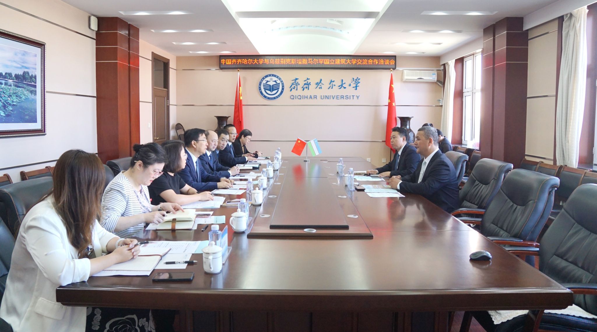 8月23日上午,乌兹别克斯坦撒马尔罕国立建筑大学尤拉米尔扎·卡尤莫夫副校长访问sunbet申搏,校长郝文斌、副校长杜海军在办公楼504会议室会见到访人员,双方围绕校际合作事宜进行友好会谈。教务处、国际交流合作处、建筑与土木工程学院、国际教育学院等相关单位负责人参加会谈。